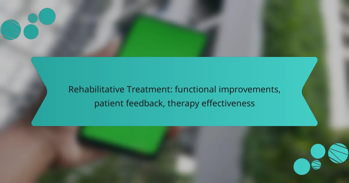 Rehabilitative treatment options in Canada aim to enhance functional abilities and improve the quality of life for patients recovering from injuries or illnesses. By employing a multidisciplinary approach, these therapies are customized to meet individual needs, focusing on restoring physical capabilities and promoting independence. Patient feedback is essential in evaluating the effectiveness of these therapies, offering valuable insights that help refine treatment strategies for better outcomes.